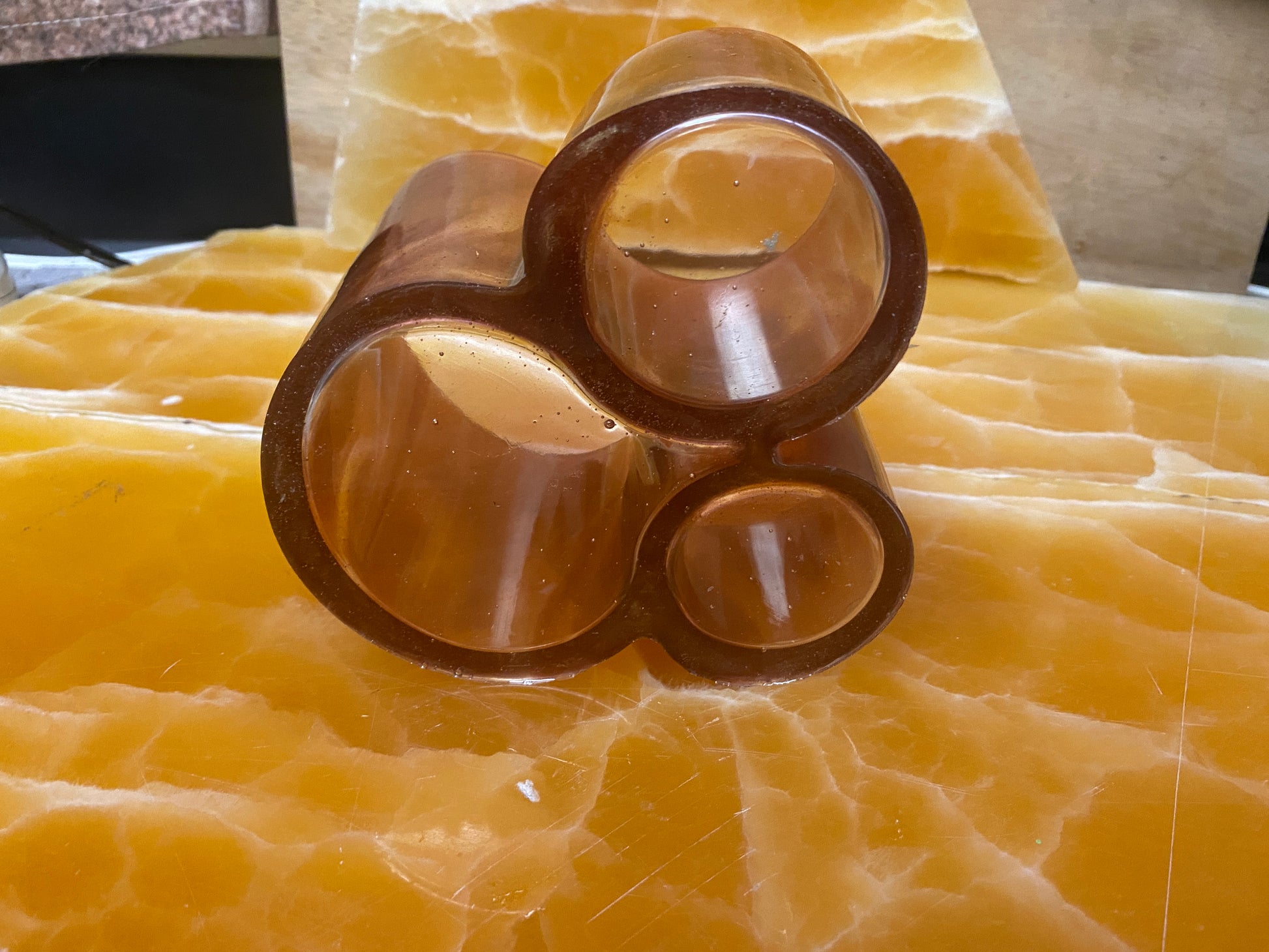 Add elegance and function to your beauty space with this handcrafted resin vanity organizer in a rich, glowing amber-brown tone. Designed with three fluid, sculptural compartments, itβs perfect for storing: